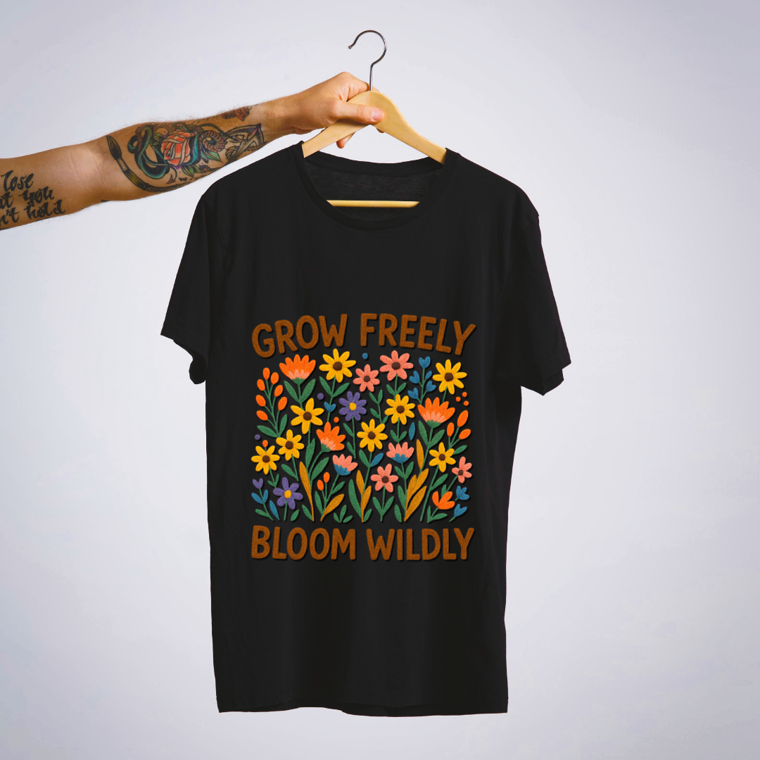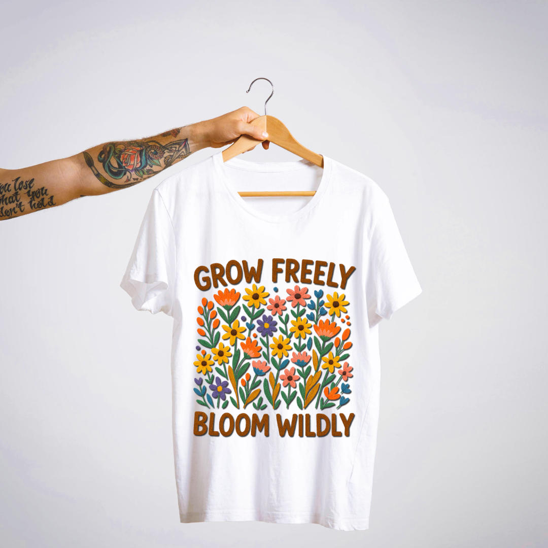 Let your spirit bloom 🌿 with the “Grow Freely, Bloom Wildly” tee — a vibrant DTF-printed floral explosion 🌼🌺🌸 that celebrates individuality, self-growth, and untamed joy.
