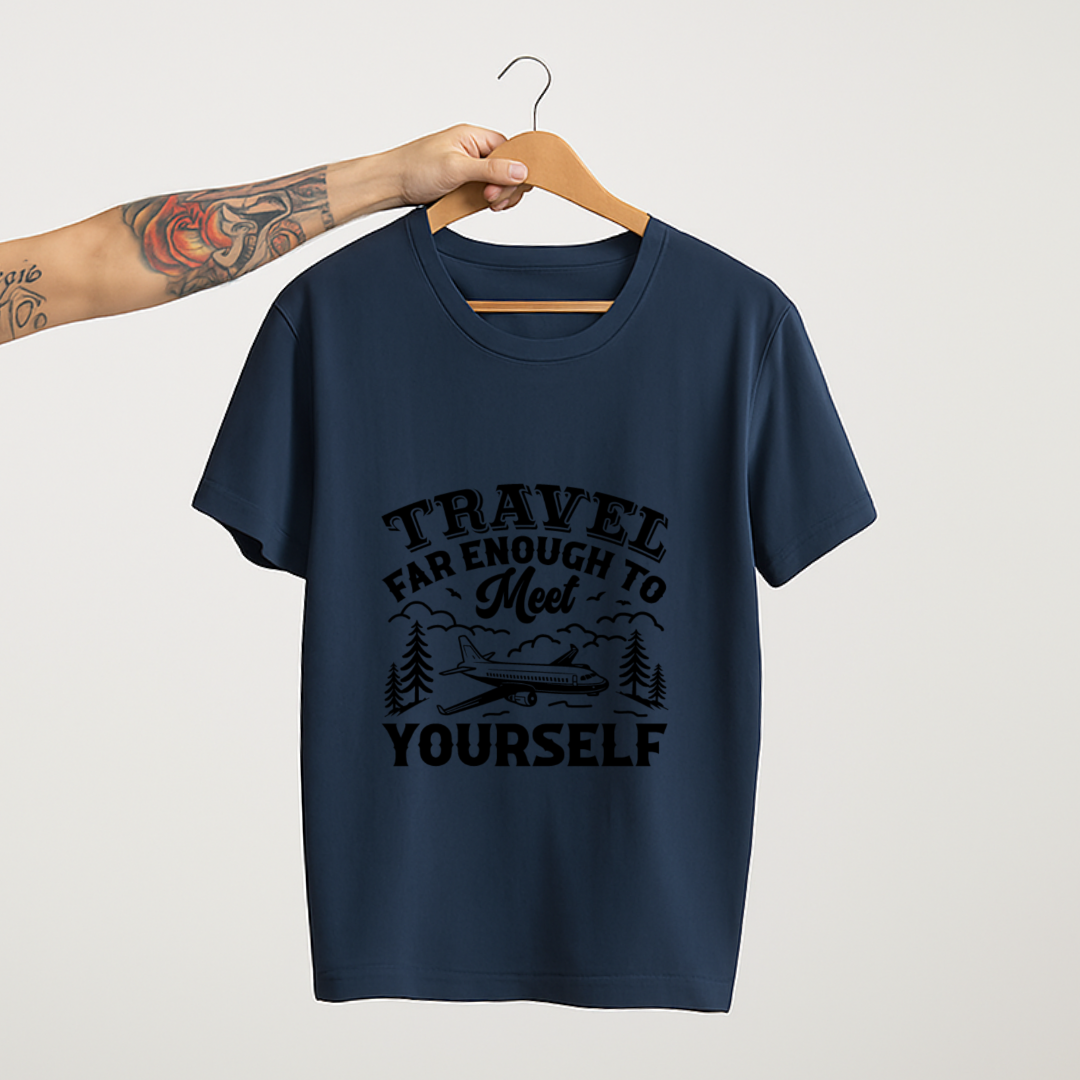 SoulThread “Travel Far Enough to Meet Yourself ” T-Shirt – Wanderlust Explorer Tee | Unisex Cotton (Made in India)