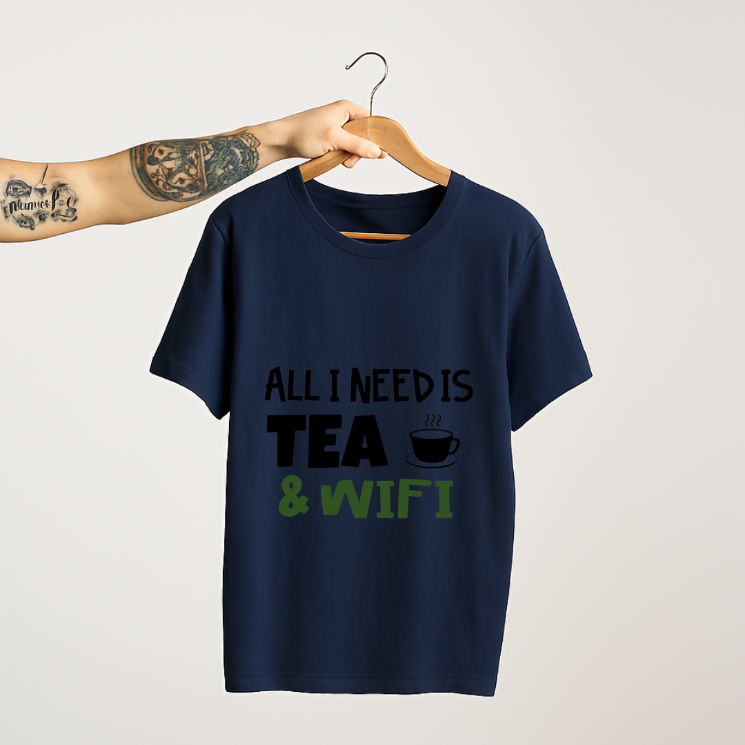 SoulThread All I Need is Tea & WiFi T-Shirt – Funny Chai Lover Unisex Tee | 100% Cotton | Made in India
